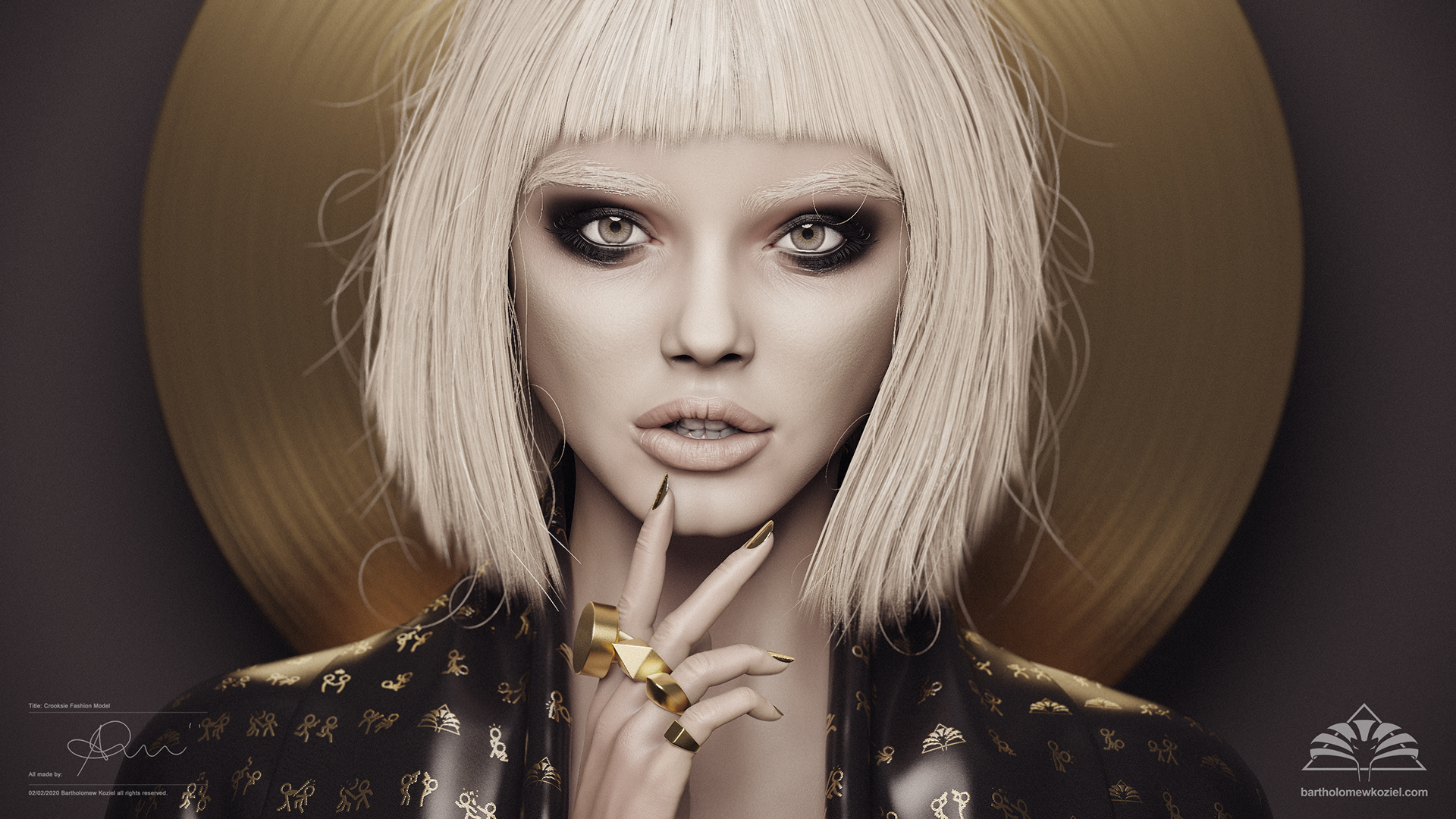 and designed with ZBrush. Clothing design and simulation were made with Marvelous Designer. The texture materials and studio lighting