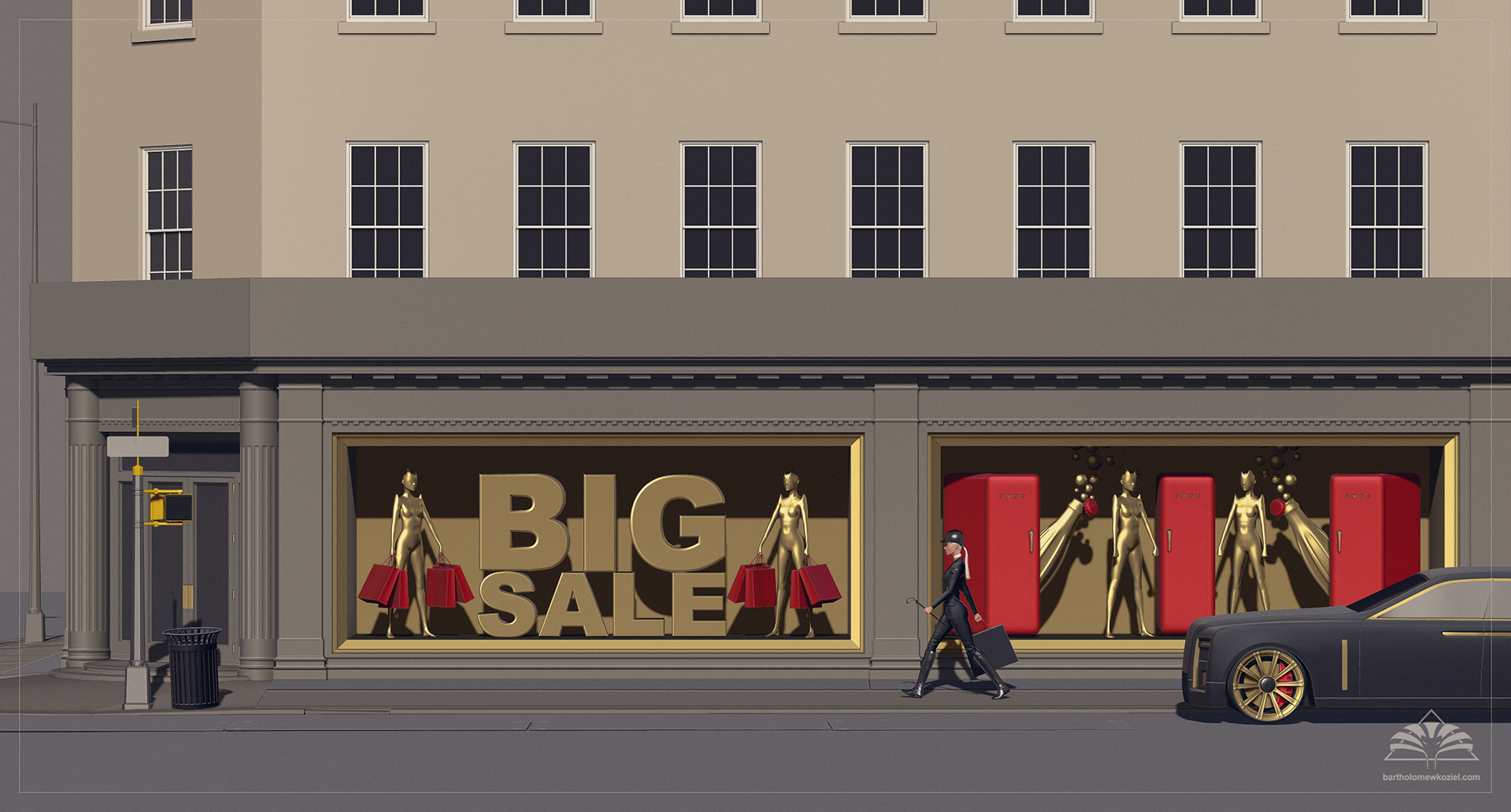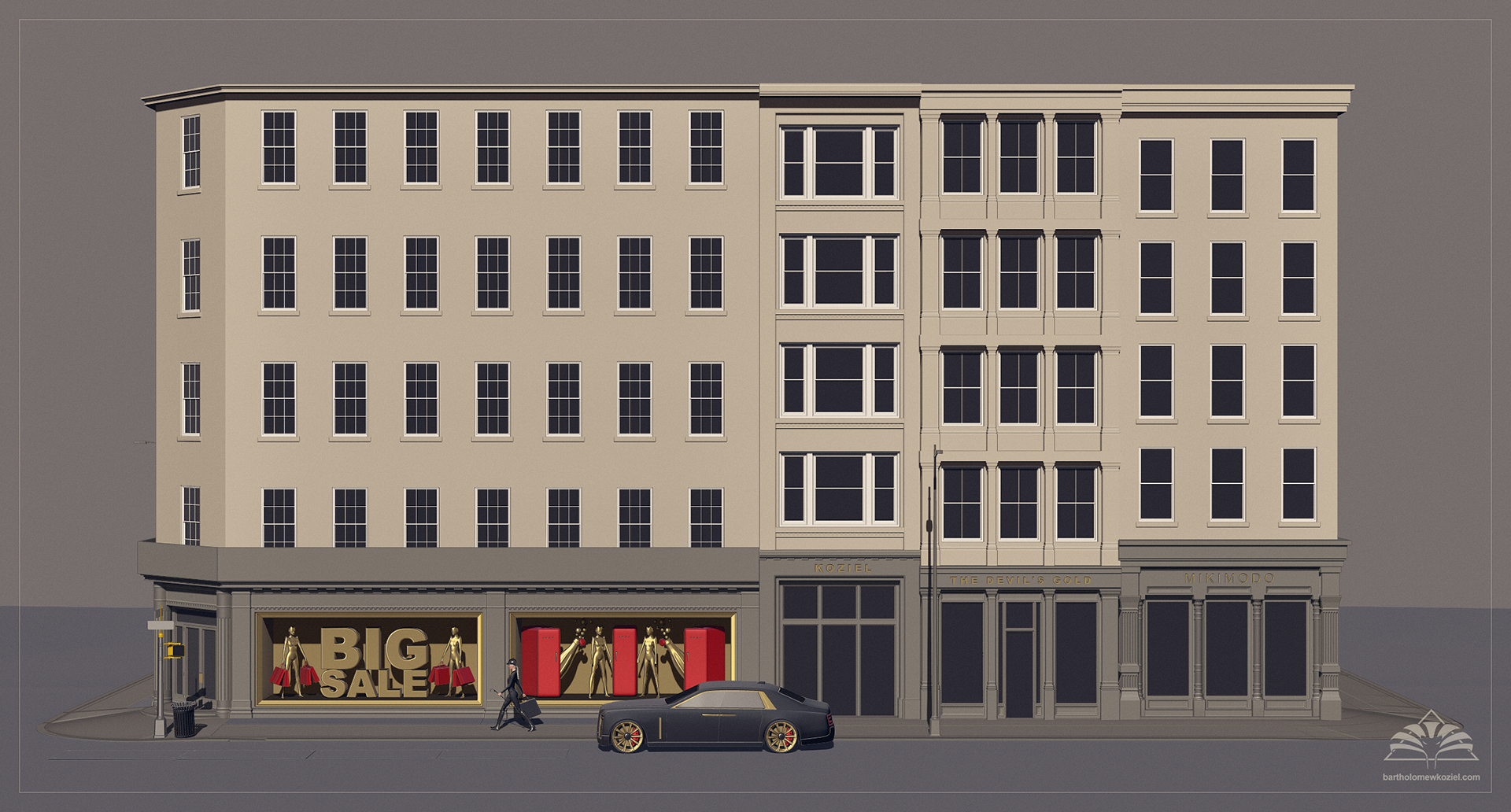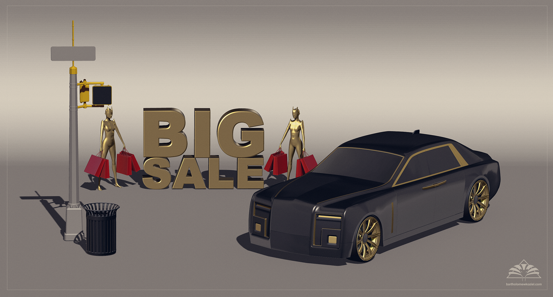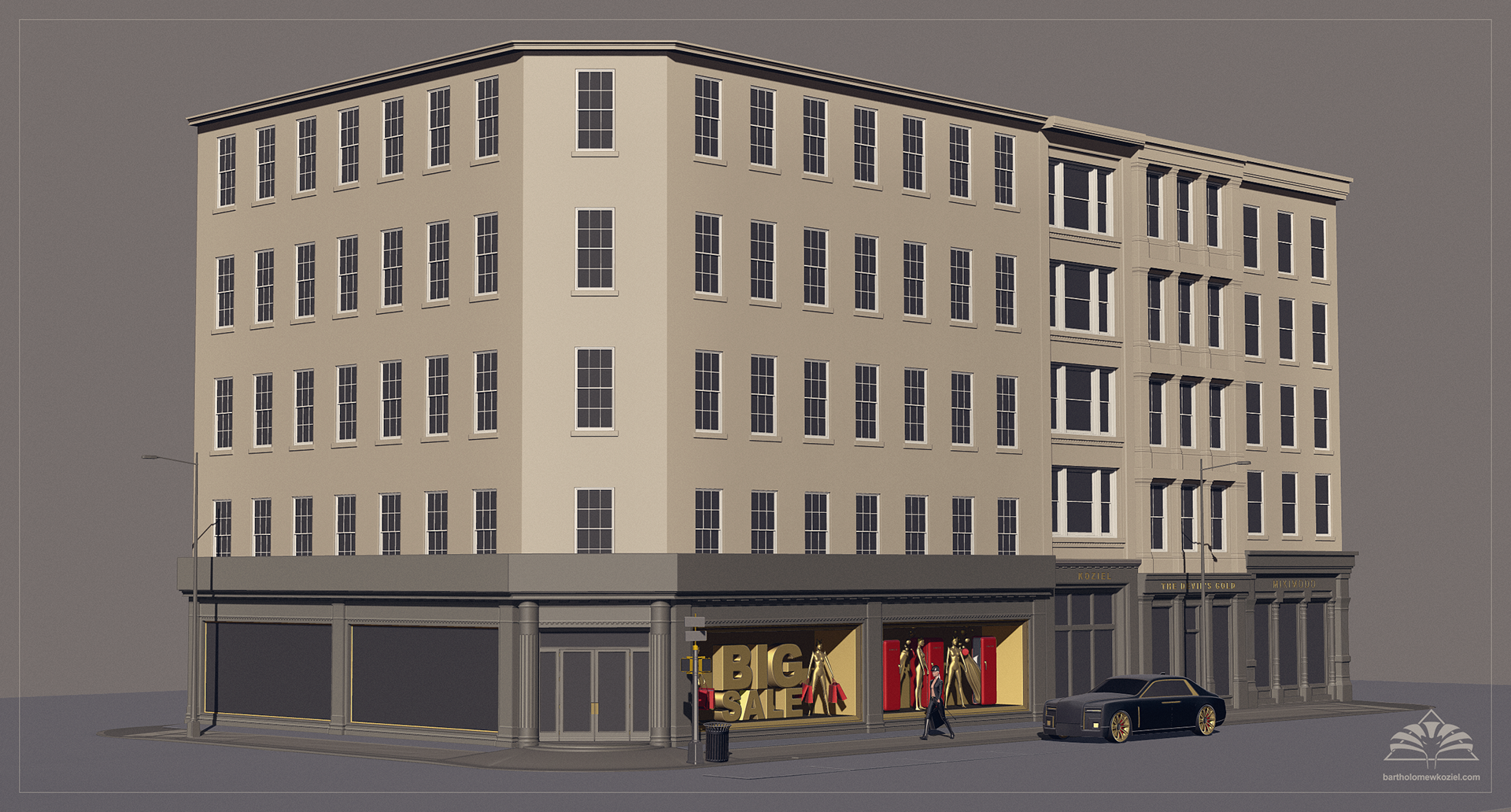 ZBrush viewport showcasing the concept design scene, items modeled with